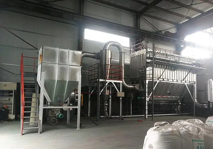 钠基干法脱硫是常用的一种烟道气脱硫法,其脱硫反应原理是利用脱硫剂超细粉(825目食品级超细碳酸氢钠)与烟气充分混合、接触,在催化剂和促进剂的作用下,与烟气中 SO2 快速反应。在反应器、烟道及布袋除尘器内,脱硫剂超细粉一直与烟气中的 SO2 发生反应。