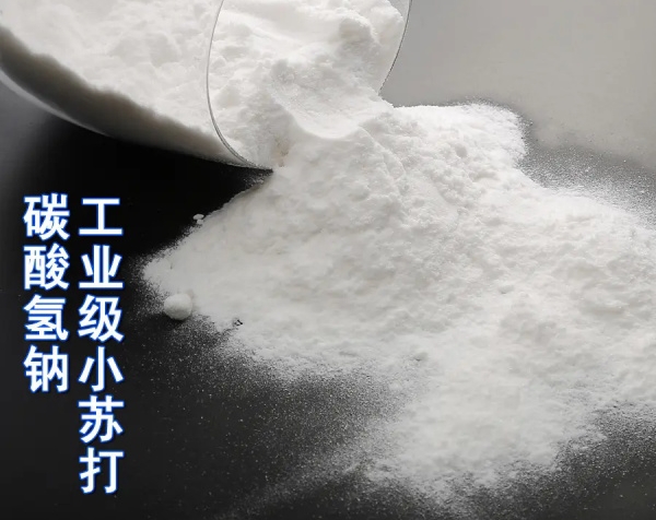 工业级小苏打水溶液呈碱性可与油污发生皂化反应,用于羊毛洗涤剂的制作中。橡胶工业上利用小苏打与明矾、H发孔剂配合起均匀发孔的作用,用于橡胶和海绵的生产。可作为染色印花的固色剂、织物染整后的处理剂用于印染上。在消防器材中用于生产酸碱灭火机和泡沫灭火机。